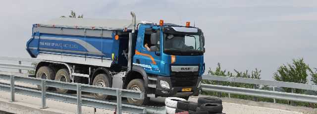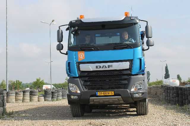 Nu am stat prea mult pe gânduri şi am urcat la volanul primului camion, DAF CF cu basculantă. În dreapta mă aştepta deja un trainer de la ATA, care mi-a explicat regulile de siguranţă şi configuraţia traseului, adică zone cu pietriş, asfalt, cu urcări şi coborâri abrupte, dar şi curbe strânse.