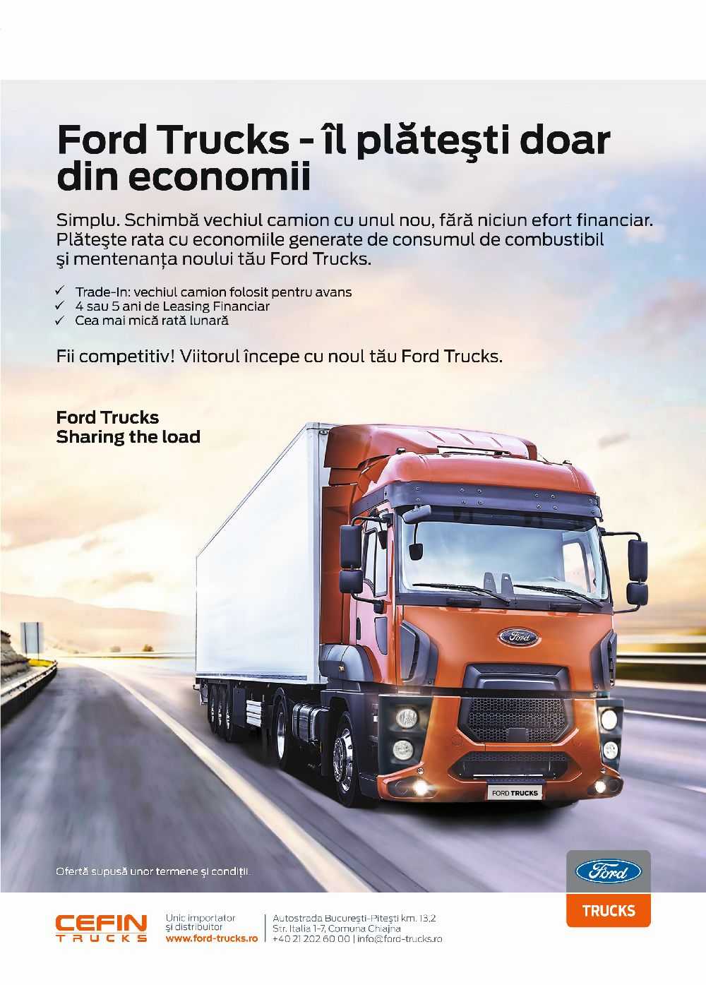 Piaţa de vehicule rulate nu este una simplă, dimpotrivă. Este destul de sofisticată şi trebuie să te adaptezi rapid la dinamica ei. Ne-am propus ca anul acesta să comercializăm circa 800 de vehicule comerciale rulate şi undeva la 300-350 de vehicule noi. Şi cred că ne vom atinge ţinta.”, susţine Stefano Albarosa, fondator şi CEO Cefin Trucks. Cefin Trucks activează de peste 20 de ani în domeniul auto ca furnizor de servicii și produse pentru profesioniștii din lumea transporturilor.