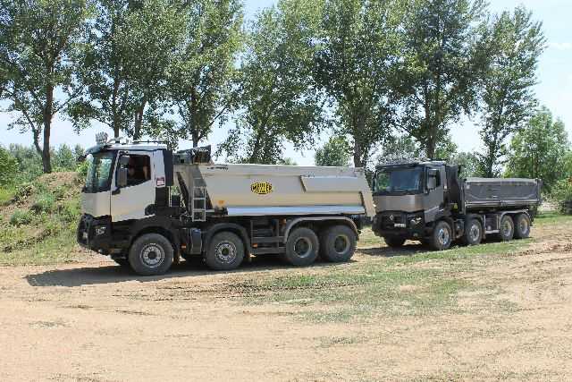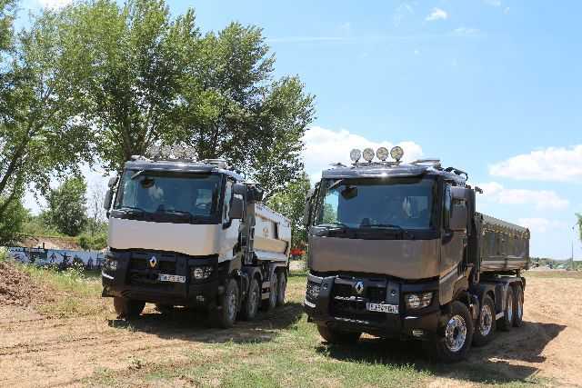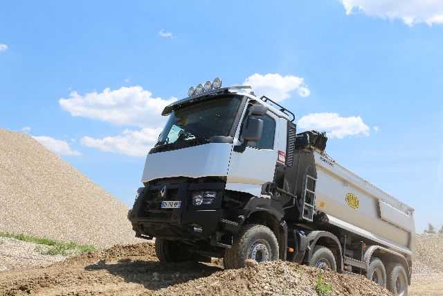La început de vară, Renault Trucks România le-a pregătit o surpriză jurnaliştilor din domeniul auto şi al constucţiilor: un test-drive într-o balastieră din apropierea Capitalei, cu doi dintre greii companiei, camioanele C440 8x4 Optitrack şi K 480 8x4! Traseul de testare presupunea urcări şi coborâri abrupte, pe un teren cam instabil, căci tocmai plouase cu o seară înainte. La toate acestea s-a adăugat traficul firesc dintr-o balastieră, căci activitatea acesteia nu a fost oprită pe durata testului. Aşa că a trebuit să fim cu ochii în patru şi după alte camioane sau încărcătoare frontale.