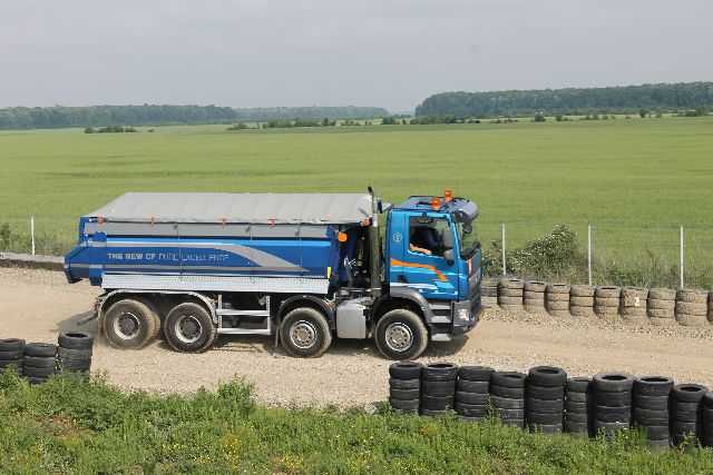 Participanții la sistemul de transmisie cu patru roți și la cele patru osii HydroDrive s-au întors în cercuri pe teren și au experimentat modul în care raza de curbură utilizată în blocare este atât de mare încât zona de practică a fugit aproape. Cu ajutorul unui camion MAN și a unei semiremorci basculante, experții echipei Meiller le-au arătat şoferilor cât de drastic se schimbă distrubuţia încărcăturii pe roți în timpul procesului de basculare. Un laser special a demonstrat cât de mult se torsionează suprastructurile la o astfel de operaţiune şi cum poate duce la înclinare încărcarea neuniformă a camionului.