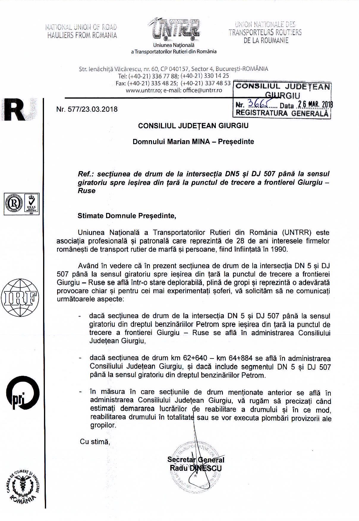 Pe această cale, UNTRR apreciază implicarea Guvernului, Ministerului Transporturilor și Ministerului Finanțelor Publice pentru că au răspuns solicitărilor noastre, în condițiile în care industria de transport rutier are o contribuție semnificativă în PIB.