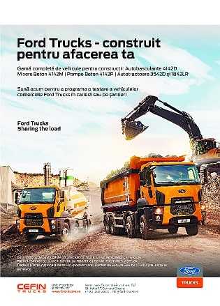 “Colaborarea noastră cu Cefin Trucks a început în vara lui 2018, când am comandat și ne-a fost livrat primul nostru model marca Ford, 1848T XHR. Ne-a fost clar înca din acel moment că avem în echipa Ford un partener de încredere, pe termen lung, care ne poate susține în planurile de dezvoltare a afacerii și de livrare a unor servicii la cel mai înalt nivel de calitate și promptitudine. În decembrie 2018, când ne-am dorit completarea flotei noastre, ne-a convins detașat configurația F-MAX cu un număr important de opționale incluse în preț și leasingul operațional cu UCL FM”, declară Robert Szekely, administratorul Vesna GC.